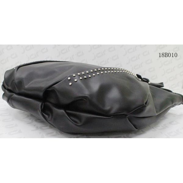Big Size Casual Female Black PU Tote Bag With Nickel Metal Studs , Customized Logo Images |